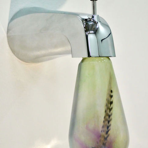 These works speak to the necessity of water in our daily lives and also to the fragility of our water supply. Regardless of social status or culture, clean water is what ties us together along with nature depending on the same resource. The hand tied shing ies coming from the faucet signify how one must consider how important our ecosystem is to our own daily lives. These works are truly a contemporary catharsis for Lopez who has risen from the ood waters to produce pieces of contemplation and connection.